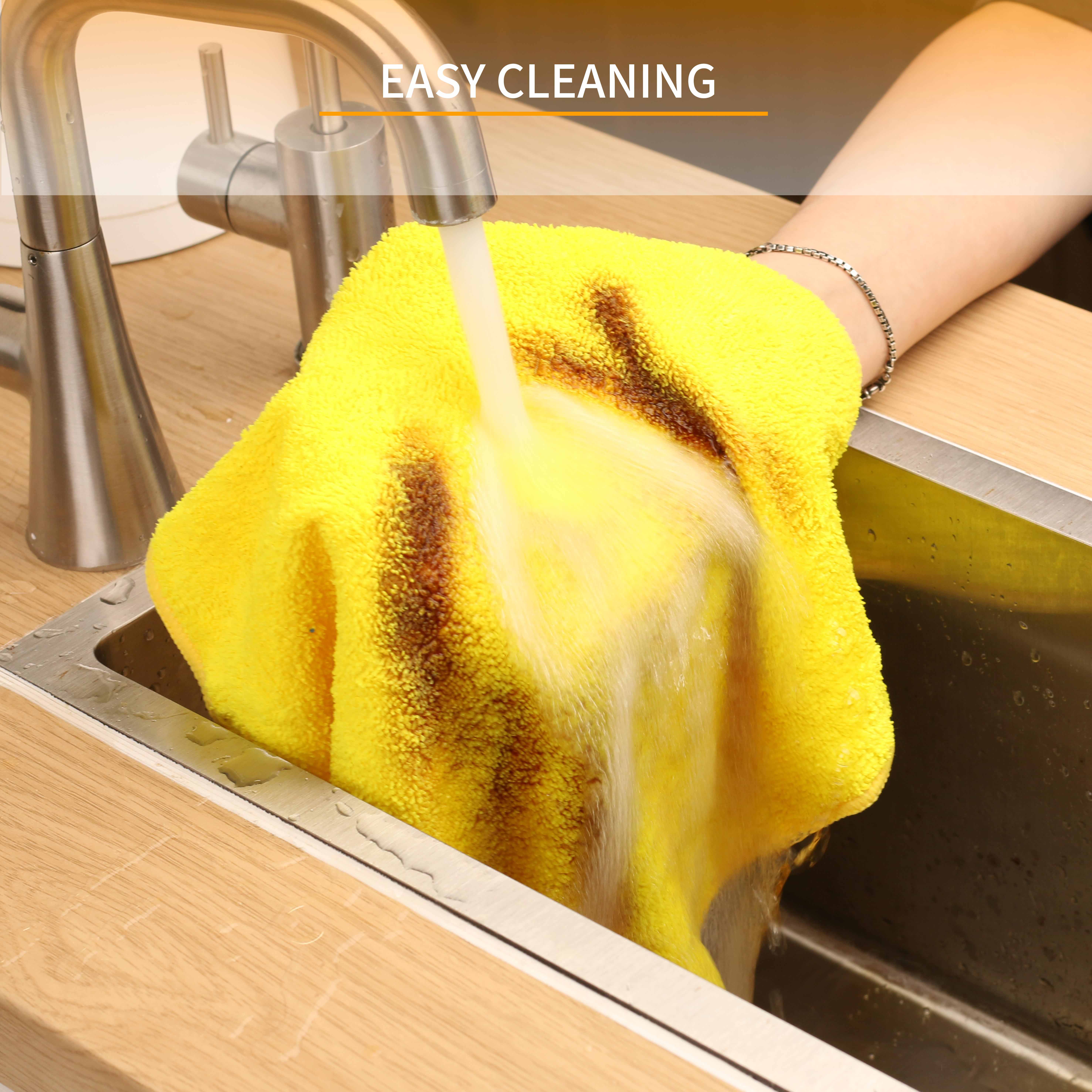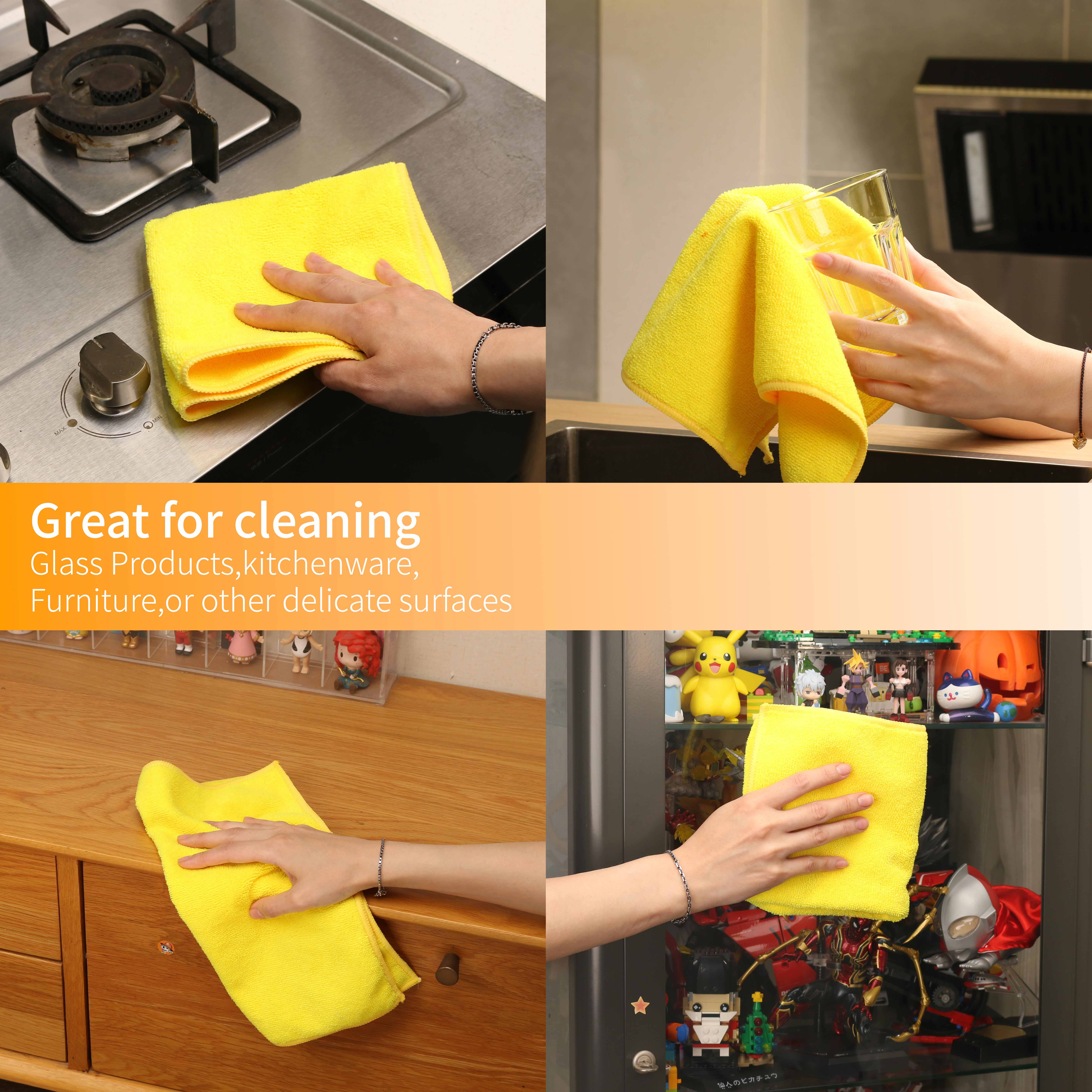 Introducing our premium kitchen dishcloth made from ultra-fine microfiber material, consisting of 80% polyester and 20% polyamide. This dishcloth has a size of 12.6"*12.6" and boasts excellent water absorption and cleaning power, without leaving any lint. It is also easy to clean and perfect for use in kitchens and household cleaning tasks.